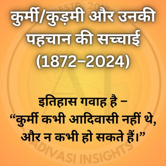 ब्रिटिश शासन काल में जनगणना रिपोर्ट (Census Reports): 1871, 1881, 1891 और 1931 की जनगणना रिपोर्टों में कुड़मी/कुर्मी महतो को कृषक जाति (Agricultural Caste) के रूप में दर्ज किया गया है। कहीं भी इन्हें "आदिवासी" या "जनजाति" के रूप में सूचीबद्ध नहीं किया गया।